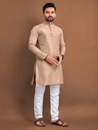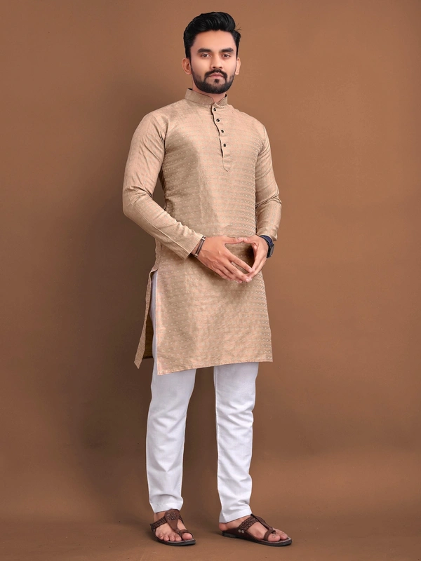 Kurta Details: Crafted from soft Jacquard fabric with an intricate self-buti design, this kurta brings a touch of sophistication and traditional charm to your wardrobe. Ideal for festivals, weddings, and special occasions.